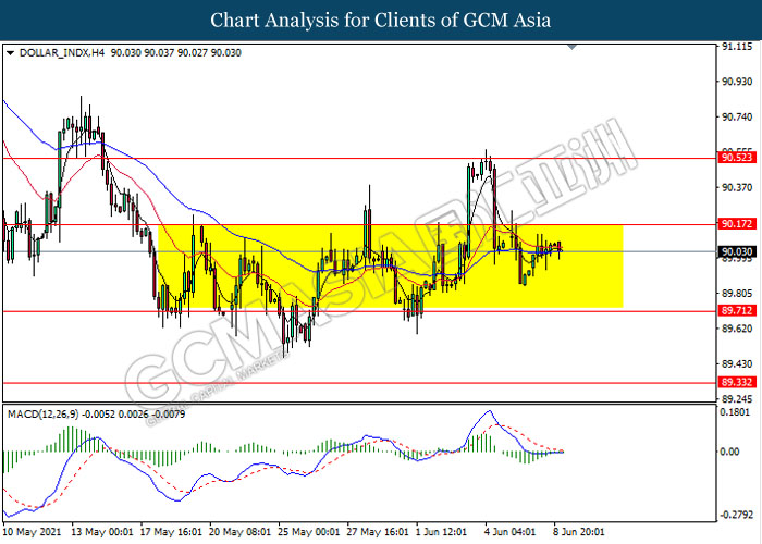 DOLLAR_INDX, H4: Dollar index remain traded in a sideway channel. Due to lack of momentum and clear direction from MACD, it is suggested to wait until further signal appear before entering the market.