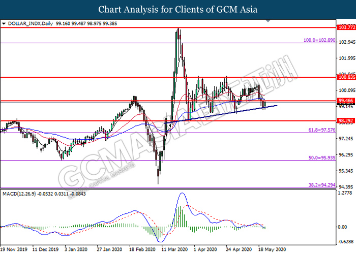 DOLLAR_INDX, Daily: Dollar index was traded higher following prior rebound from the upward trend line. However, MACD which illustrate bearish momentum with the formation of death cross suggest the pair to undergo technical correction in short term.