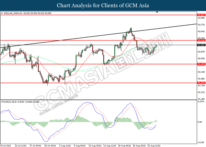 GBPUSD, H4: GBPUSD was traded lower following prior retracement from the resistance level at 1.3730. MACD which illustrated increasing bearish momentum suggest the pair to extend its losses toward support level at 1.3605.