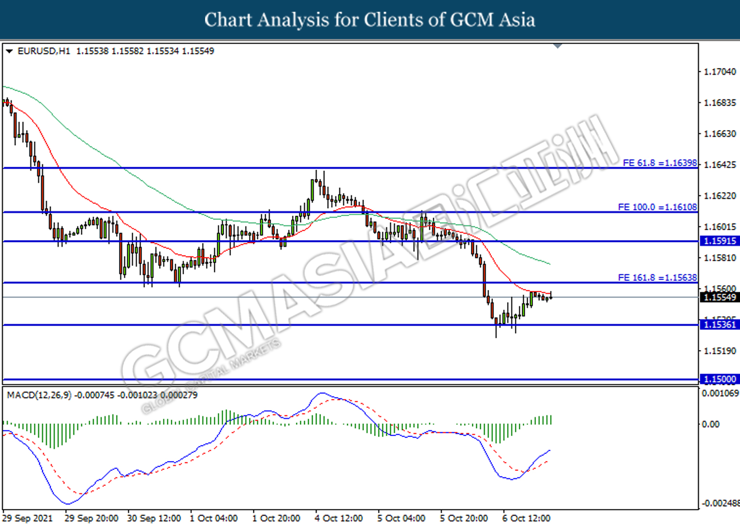 EURUSD, H1: EURUSD was traded higher following prior rebound from the lower level. MACD which illustrate bullish signal suggests the pair to be traded higher in short-term as technical correction.