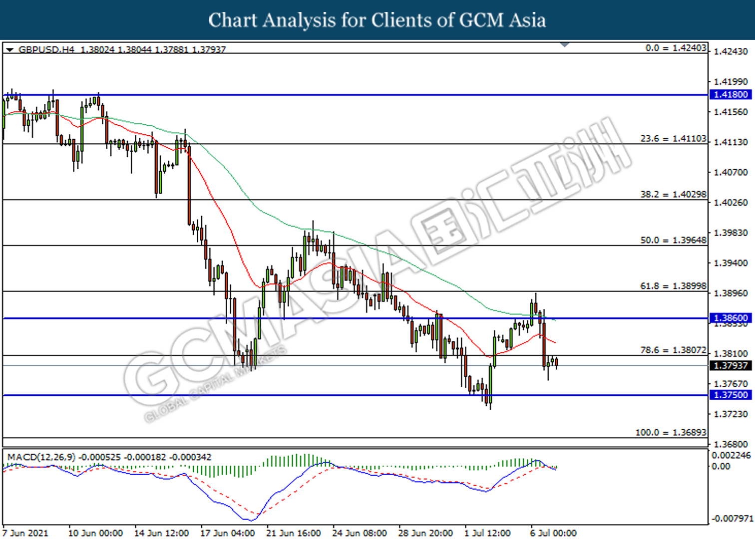 Resistance level: 1.3805, 1.3860