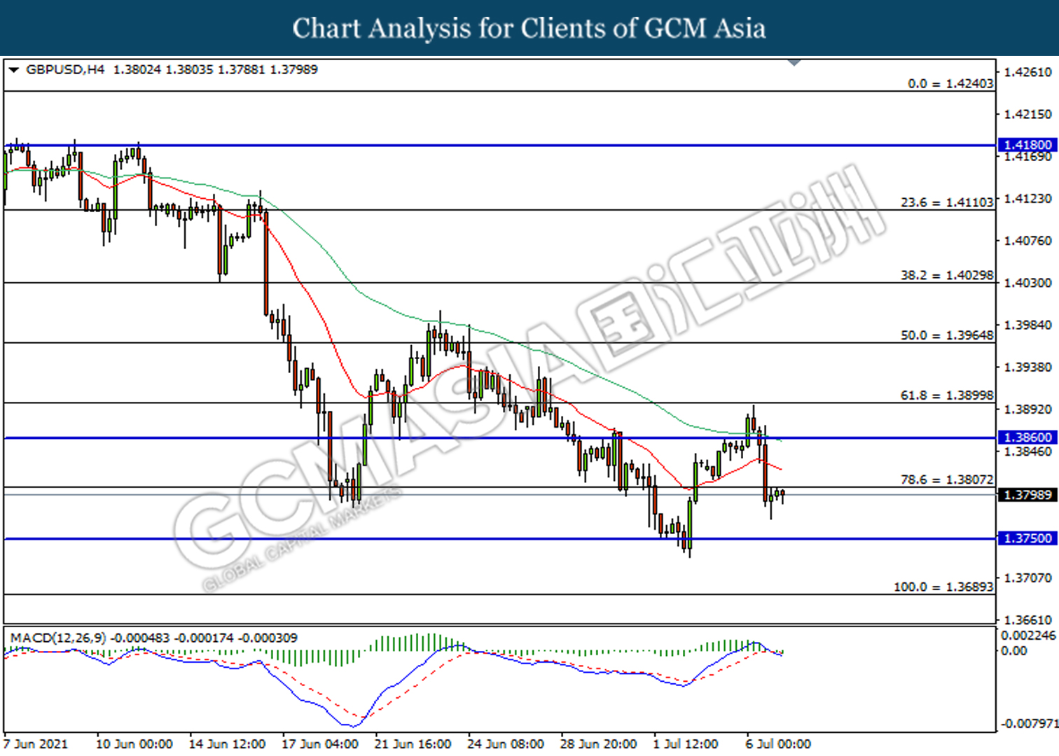 Resistance level: 1.3805, 1.3860