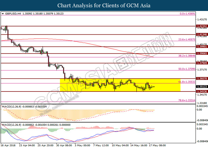 GBPUSD, H4: GBPUSD was traded within consolidation with absence of obvious momentum from candlestick pattern formation and MACD. Thus it is suggested to wait for confirmation breakout to grasp the next direction of the pair in the near future.