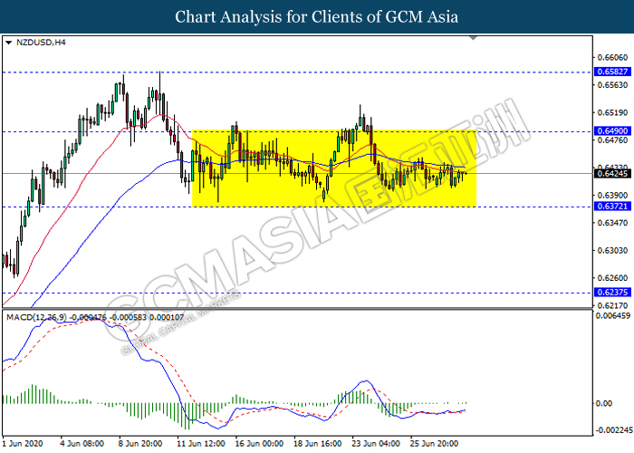 NZDUSD, H4: NZDUSD remain traded flat in a sideway channel. Due to lack of clear direction and momentum from MACD, it is suggested to wait until further signal appear before entering the market.