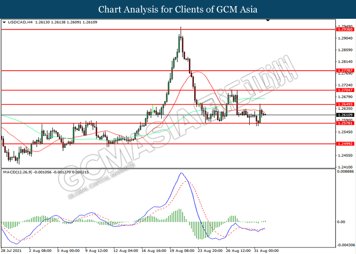 USDCAD, H4: USDCAD was traded lower while currently near the support level at 1.2580. However, MACD which illustrated increasing bullish momentum suggest the pair to be traded higher in short-term as technical correction.