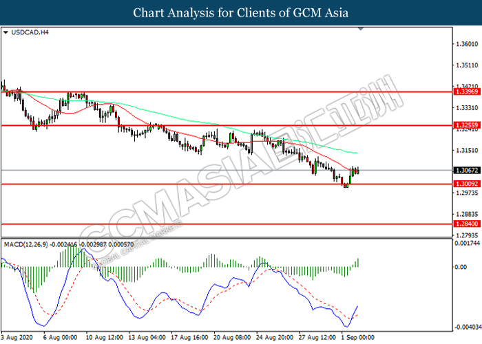 USDCAD, H4: USDCAD was traded higher following prior rebound from the support level 1.3010. MACD which illustrated increasing bullish momentum suggest the pair to extend its gains toward resistance level at 1.3255.