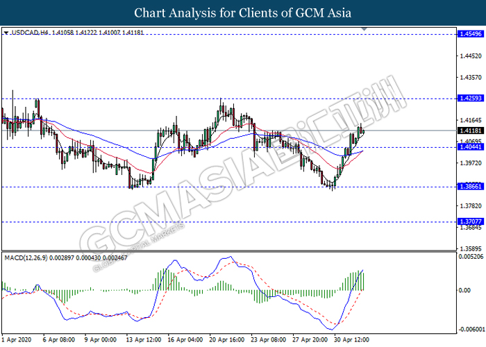 USDCAD, H4: USDCAD was traded higher following prior breakout above the previous resistance level 1.0445. MACD which illustrate ongoing bullish momentum signal suggest the pair to extend its gains towards the resistance level 1.4260.