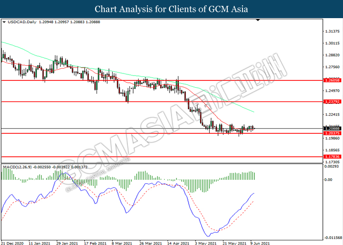 USDCAD, Daily: USDCAD was traded lower while currently testing the support level at 1.2040. MACD which illustrated diminishing bullish momentum suggest the pair to extend its losses after it successfully breakout below the support level.