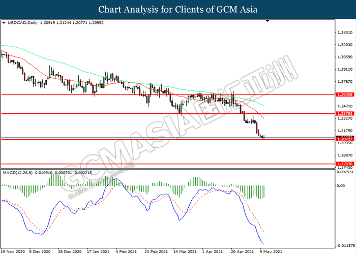 USDCAD, Daily: USDCAD was traded lower while currently testing the support level at 1.2075. However, MACD which illustrated diminishing bearish momentum suggest the pair to be traded higher in short-term as technical correction.