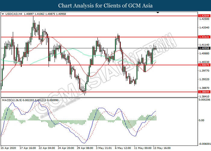 USDCAD, H4: USDCAD was traded higher following prior rebound from the support level at 1.4005. However, MACD which illustrated diminishing bullish momentum suggest the pair to be traded lower in short-term as technical correction.