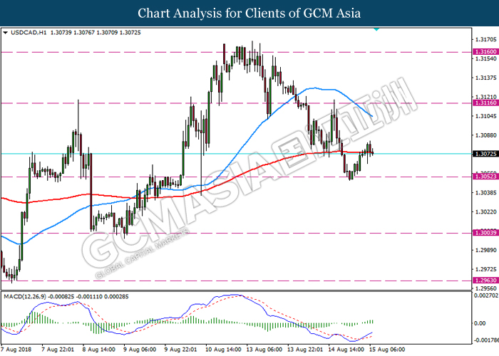 USDCAD, H1: USDCAD was traded higher following prior rebound from the support level 1.3050. MACD which illustrate bullish momentum signal with the golden cross formation suggest the pair may extend its gains towards the resistance level 1.3115.