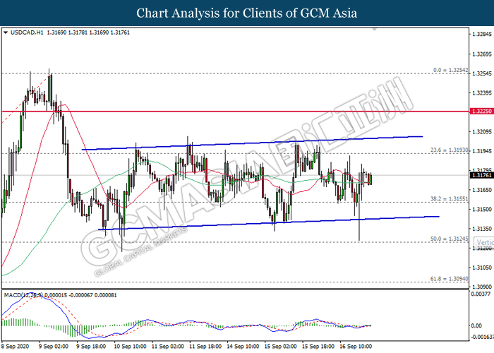 USDCAD, H1: USDCAD was traded flat in between 1.3155 and 1.3195. Due to the lack of signal from MACD and price action, it is suggested to wait for a breakout before entering the market.