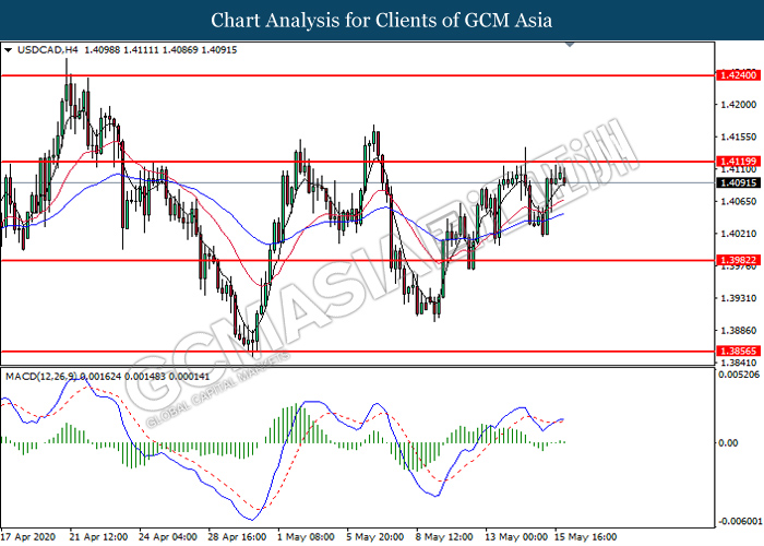 USDCAD, H4: USDCAD was traded lower following prior retracement from the resistance level at 1.4120. MACD which illustrates diminishing bullish momentum suggest the pair to extend its losses toward the support level at 1.3980.