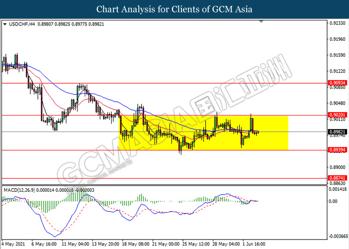 USDCHF, H4: USDCHF remain traded in a sideway channel. Due to lack of momentum and clear direction from MACD, it is suggested to wait until further signal appear before entering market.
