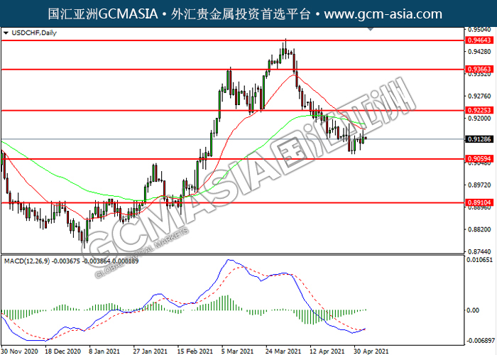 USDCHF, Daily: USDCHF was traded lower while currently near the support level at 0.9060. However, MACD which illustrated diminishing bearish momentum suggest the pair to be traded higher in short-term as technical correction.