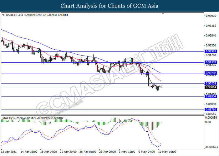 USDCHF, H4: USDCHF was traded flat while currently testing near the resistance level 0.9020. However, MACD which illustrate bullish bias signal suggest the pair to be traded higher after it breaks above the resistance level.