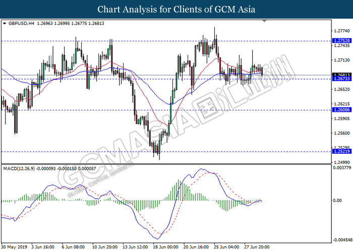 As for commodities market, crude oil price further its gains by 2.93% to $59.87 per barrel following diminishing tensions from the trade war as well as agreement between OPEC and Russia to further production cut throughout the year 2019. Investors will focus on further production cut details which is expected to be discussed during the OPEC meeting on 1st and 2nd of July. On the other hand, gold price further its losses by 1.54% to $1,387.65 a troy ounce due to investors heightened risk appetite as they sell off their safe-haven assets and enter into stronger dollar.