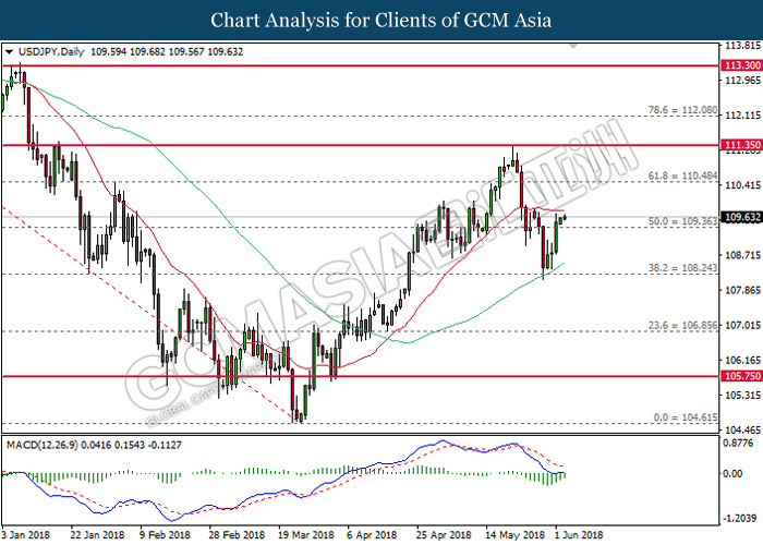 USDJPY, Daily: USDJPY pared its prior losses following a rebound from the 60-MA line (green) near 108.25. MACD histogram which illustrate diminishing downward momentum suggests the pair to extend its gains after closing above the 20-MA line (red).