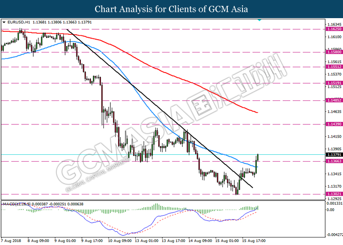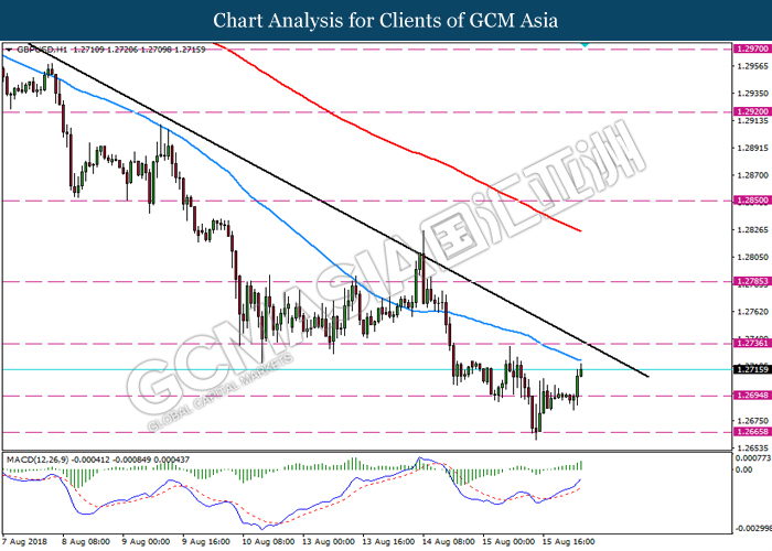 The dollar index has retreated from a previous high and current sentiment is now coupled with the Retail Sales data release. According the US Census Bureau, the retail rate of consumer items for June has given a positive reading with an increase of 0.5%, which is higher than market expectations with the reading of 0.1%. In addition, dollar sentiment remains stimulated by the weaknesses in the Eurozone, which has been pressured by fears of European banks’ exposure to Turkey as well as increasing expectations of interest rates for September. All these factors have confirmed the dollar sentiment remain subjected to a bullish momentum for long term. The dollar index has slipped 0.03% to 96.40 as of writing. Meanwhile, GBPUSD has rose 0.17% to 1.2704 at the time of writing following the release of inflation data which have met expectations overnight. According to National Statistics from the UK, UK CPI data which measures the rate of expenditure on goods and services in the country has also increased by 2.5% from the previous data with a reading of 2.4%, which also in line with market expectations. However, the sentiment for the pound remains offset by the ongoing fears in the country for the Brexit plan where it is likely to fail to achieve any trade agreement.
