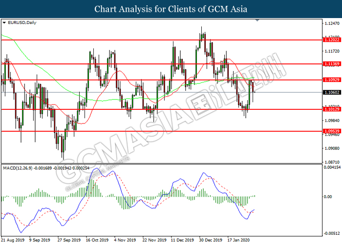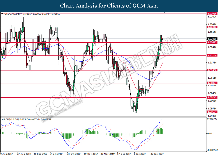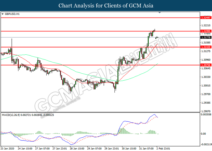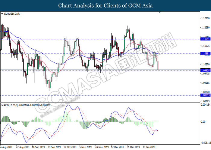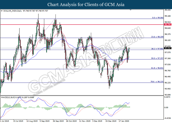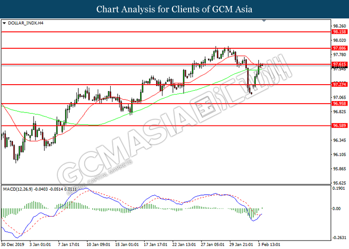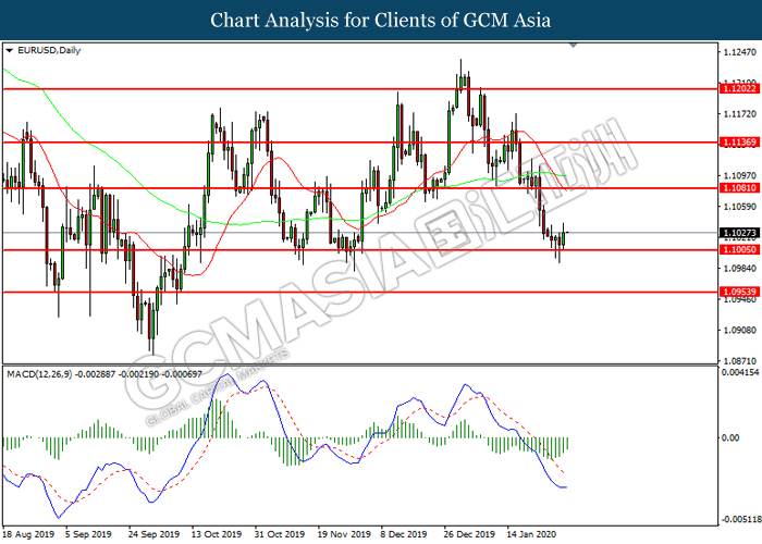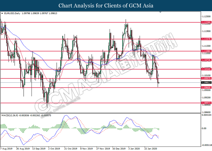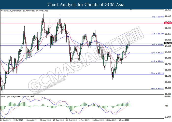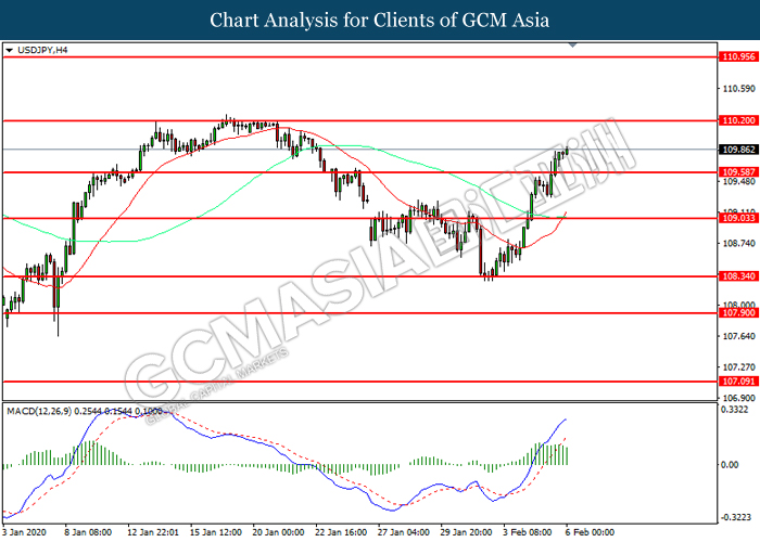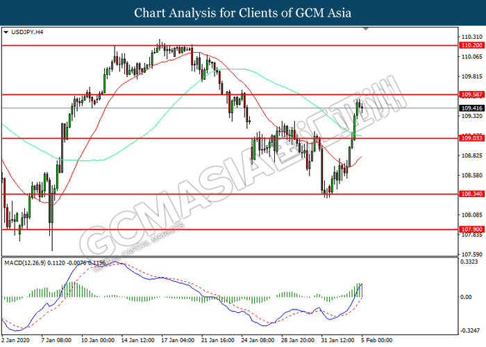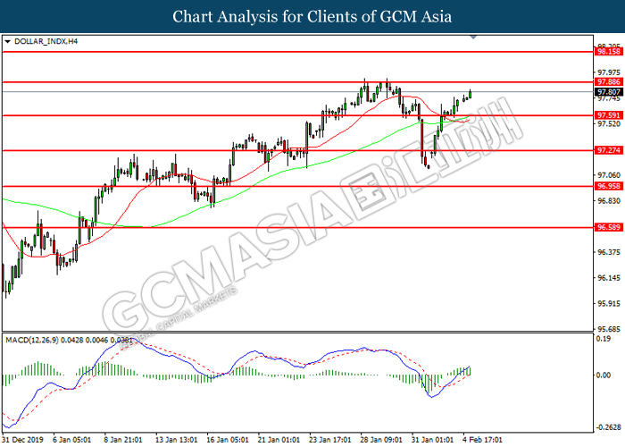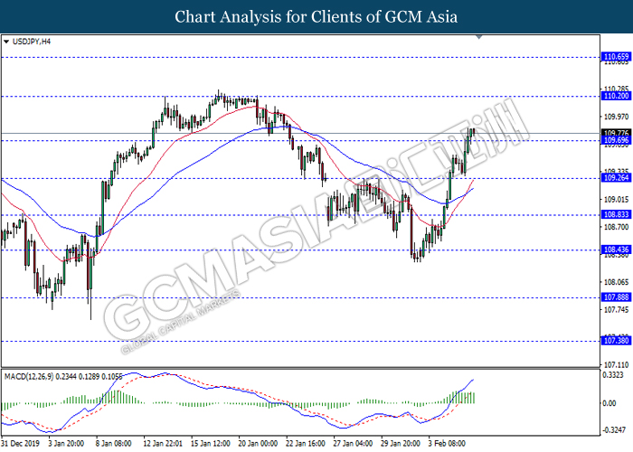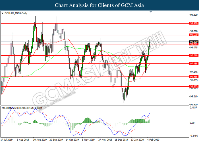 Dollar index surged following the positive jobs data from the United Stated was released yesterday. According to Department of Labor, U.S. Initial Jobless Claims notched down from the preliminary reading of 217K to 202K, better than the economist forecast at 215K. As the reading was fared better than expectation, it spurred some market optimism towards the economic progression as well as the jobs market in the United Stated. However, at this time investors would continue to scrutinize the latest updates with regards of the economic data such as Non-farm payrolls and unemployment rate which would be released tonight in order to receive a further trading signal. On the other hand, Japanese Yen slumped on yesterday amid to the risk-on sentiment in the FX market. According to Reuters, Chinese President Xi Jinping told Saudi Arabia’s King Salman that China has achieved positive results in prevention and controlling the outbreak of the coronavirus in China. In earlier, The People’s Bank of China (PBOC) has also pumped hundreds of billions of dollars into the financial system to cushion the potentially economic destruction due to the coronavirus. Such positive sentiment had stoked a shift in sentiment toward the riskier asset, while dragging down the appeal of the safe-haven currency such as Japanese Yen. As of writing, the dollar index appreciated by 0.17% to 98.30 while USD/JPY slumped 0.01% to 109.97.
