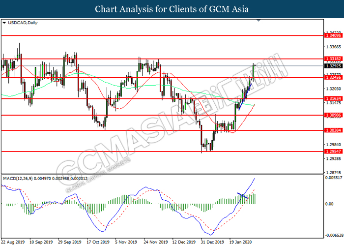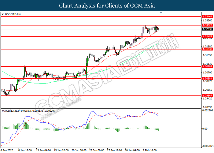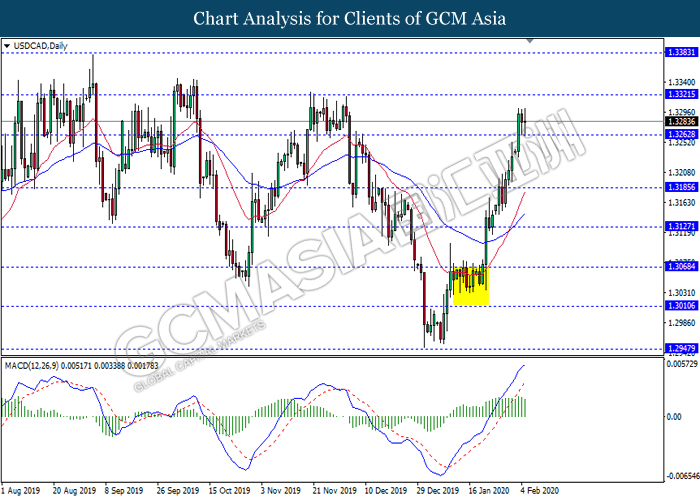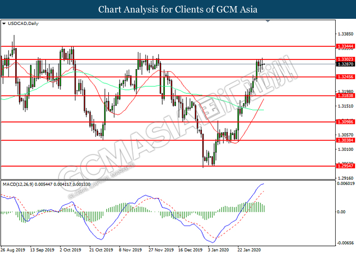 USDCAD, Daily: USDCAD was traded higher while currently testing the resistance level at 1.3300. However, MACD which illustrated diminishing bullish momentum suggest the pair to be traded lower in short-term as technical correction.