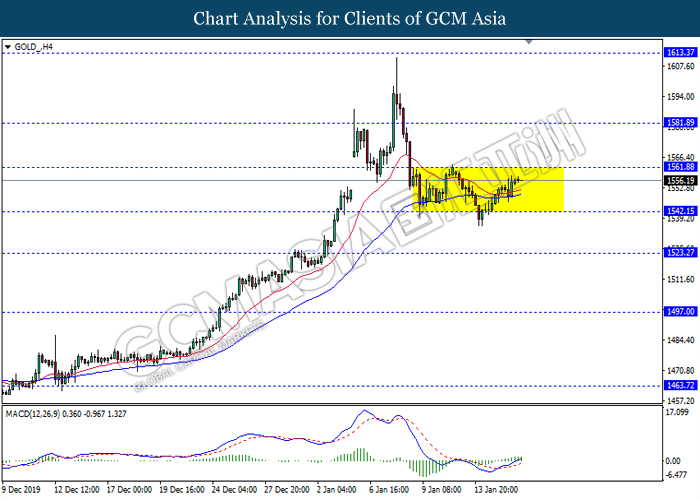 In the commodities market, the crude oil price appreciated by 0.07% to $58.12 per barrels as of writing. The oil markets edged higher following the inventory data was released. According to Energy Information Administration (EIA), the U.S. Crude Oil Inventories notched down from the previous reading of 1.164M to -2.549M, better than the economist forecast of -0.474M. However, investors worried that the oil market could get into another oversupply situation from seasonal lows in consumption, which limited the gains experienced by this black commodity. On the other hand, as of writing, the gold price appreciated by 0.03% to $1556.10 per troy ounces amid to weaker Greenback.