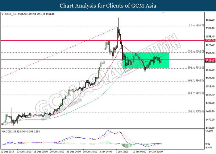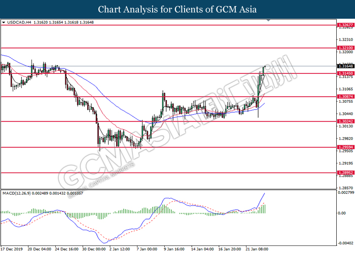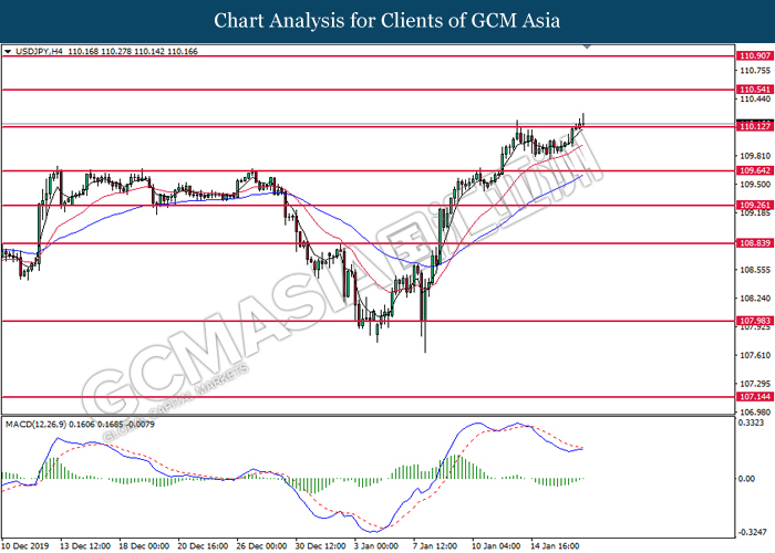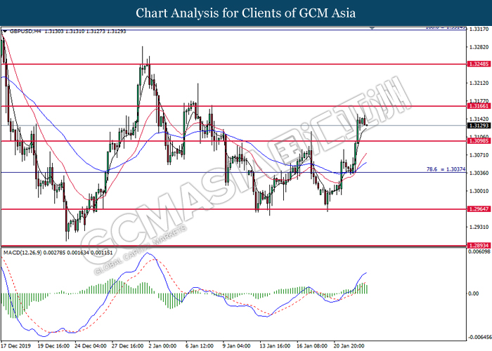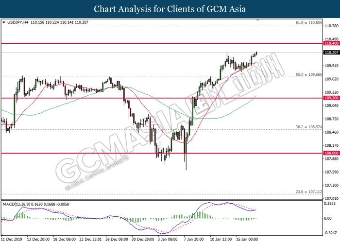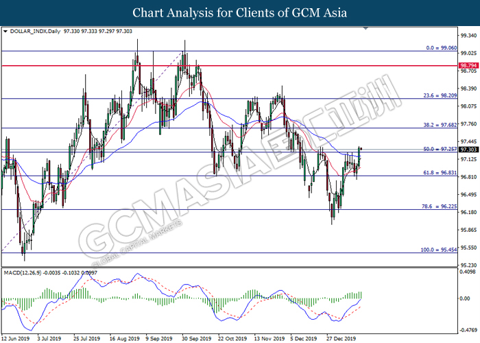 Greenback rose against a basket of six major peers on yesterday after several economic data fared better than expectation. For the month of December, Core Retail Sales which exclude sales of automobiles rose by 0.7%, significantly higher than forecast of 0.5%. The data shows resilient consumer spending for its third consecutive month despite a slowdown in job growth last month due to higher savings and rising house prices. Similarly, Philadelphia Fed Manufacturing Index for the month of January shows further expansion, with its latest reading coming in at 17.0, significantly higher than forecast of 3.8. Manufacturing activity on the east coast picked up due to high order volumes and shipments. Both data has confounded investors speculation whereby US economy is being hit badly by US-China trade war which has linger for more than a year. With diminishing trade risk following the signage of phase 1 trade deal, investors will now continue to scrutinize upcoming data releases from the US in order to gauge its economic momentum. Elsewhere, safe-haven Japanese yen extended its losses as demand for the currency waned following the signage of phase 1 trade deal. As of writing, the dollar index rose 0.07% to 97.00 while USD/JPY ticked up 0.02% to 110.17.