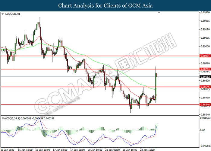 The Australian dollar have climbs against its peers after jobs data showed an unexpected drop in unemployment. According to the Australian Bureau of Statistics, the Australian economy have added 28.9K jobs in December, higher than market expectation with the reading of 15K. Besides that, unemployment rate also improved to 5.1% which also surpassed market expectation of 5.2%. The unexpected results have provide a positive surprise and unwinding bets that the central bank will cut rates next month. As of Wednesday, expectations for a 25 basis point cut from the Reserve Bank of Australia (RBA) on 4 February sat at 56%. As of writing, AUD/USD soars 0.37% to 0.6869.