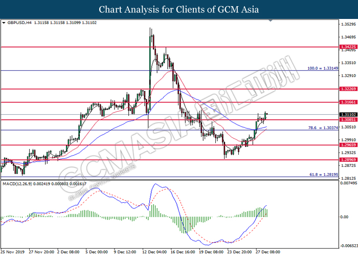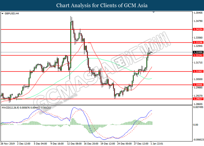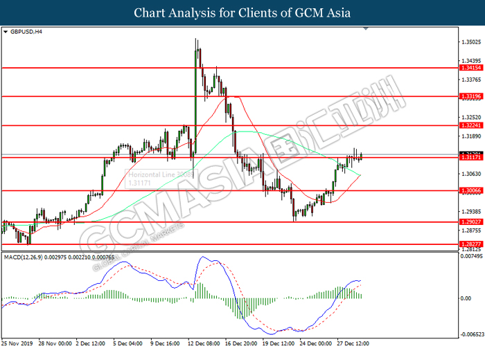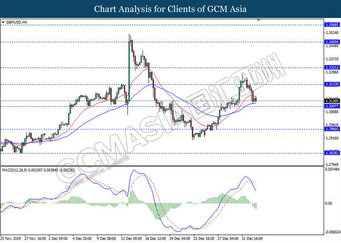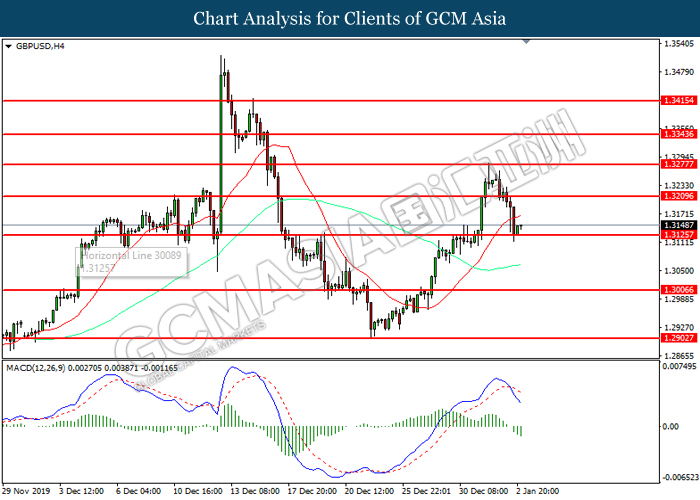 Pound Sterling recorded its biggest daily dropped in more than two weeks on yesterday amid fear over the risk of a no-deal Brexit at the end of 2020. Earlier, UK Prime Minister Boris Johnson set a hard deadline of December 2020 to reach a new trade deal with the EU, spurring fears of hard-Brexit as investors believed that it would be insufficient time to make an efficient trade deal between both countries. In addition, according to a Bank of England survey that straddled the election, it showed that 42% of respondents did not expect the Brexit uncertainty to be resolved completely until the year of 2021, a significant increase from the previous reading of 34% in November. However, investors would continue to scrutinize the latest official updates with regards of UK and European Union trade negotiations in order to gauge the likelihood movement for the pair. Besides that, Pound Sterling received a further bearish momentum following a bleak data from the UK manufacturing sector was released. According to Markit, U.K. Manufacturing Purchasing Managers Index (PMI) notched down from the previous reading of 48.9 to 47.5, missing the economist forecast at 47.6. As of writing, GBP/USD appreciated by 0.02% to 1.3143.