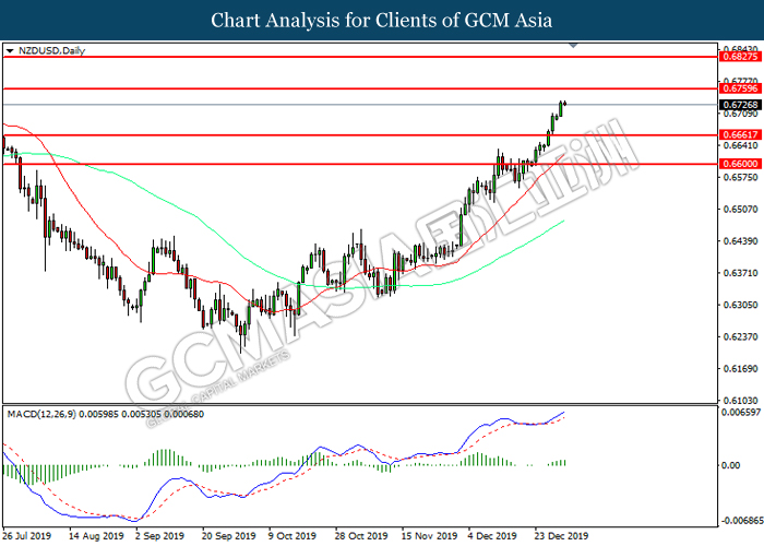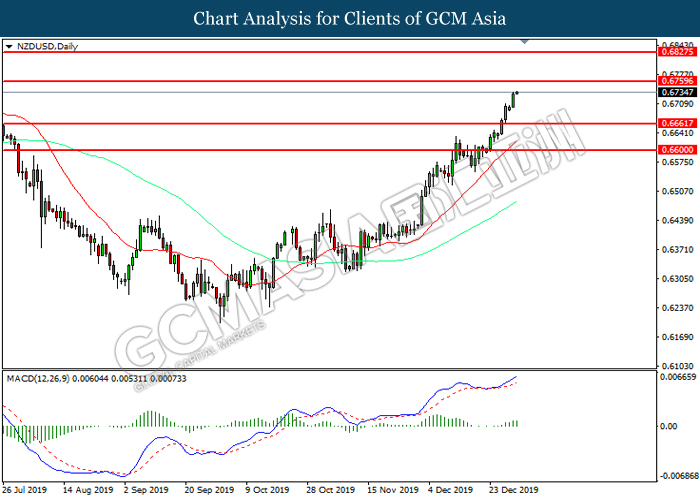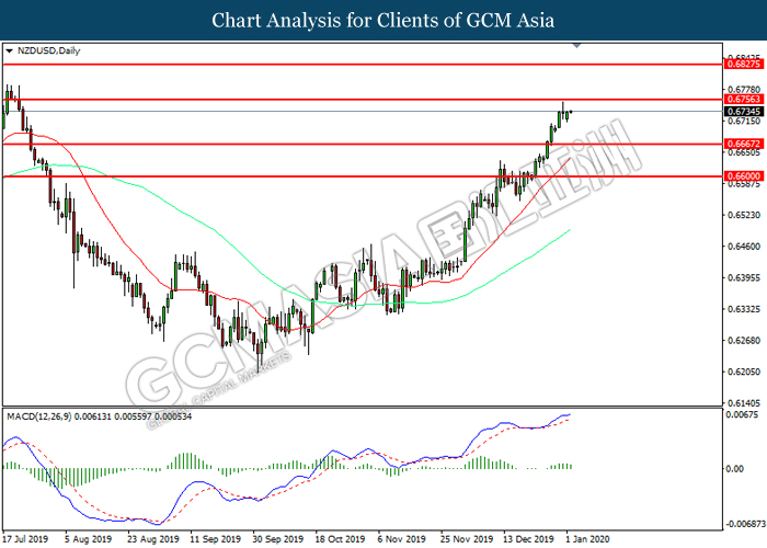 NZDUSD, Daily: NZDUSD was traded higher following prior rebound from the support level at 0.6785. However, MACD which illustrated increasing bearish momentum suggest the pair to be traded lower in short-term as technical correction.