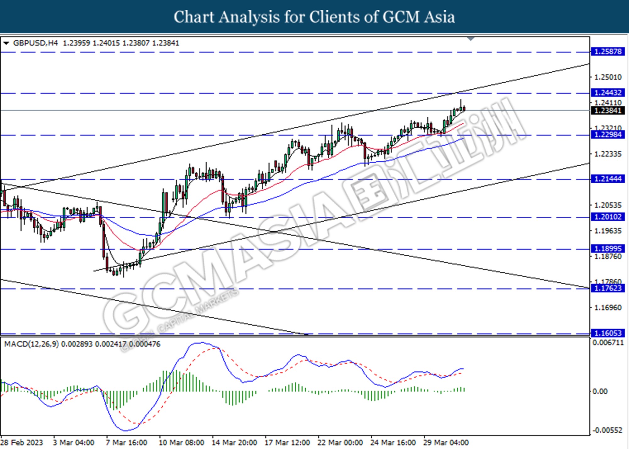 Sterling held steady as Bank of England (BoE) Governor Andrew Bailey expressed optimism about the UK’s economic outlook. Bailey said in an interview broadcast on Friday that he expects Britain would now able to avoid recession this year although economic growth prospects remained subdued. Prior to this, the BoE expected the UK economy to shrink in the first quarter, but a series of official data published earlier in March showed the economy has returned to growth in Jan unexpectedly. Retail sales data released on Friday hit 1.2%, stronger than market expectation of 0.2%, higher than prior reading, based on the Britain’s Office for National Statistics. At the same time, the UK released its Composite PMI data last Friday, where the services PMI were positive at 52.8, above the 50-level threshold, while the manufacturing PMI slipped to 48.0, representing 8 months of contraction. Despite, the S&P Global said the improvement of confidence was reflected by an easing of post-Covid supply chain difficulties and raising in retail sales. The economists also revised their expectation of the UK economic outlook after the PMI survey showed a second month of rising output in March. As of writing the GBP/USD gained slightly by 0.02% to $1.2234.