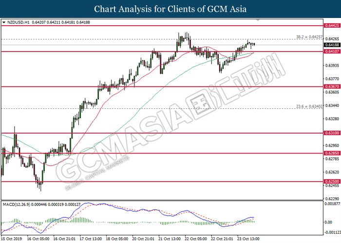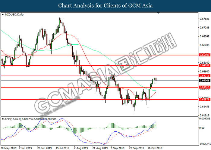 NZDUSD, Daily: NZDUSD was traded higher following prior rebound from the lower level. MACD which illustrate increasing bullish momentum suggests the pair to extend its gains, towards the direction of 0.6425.