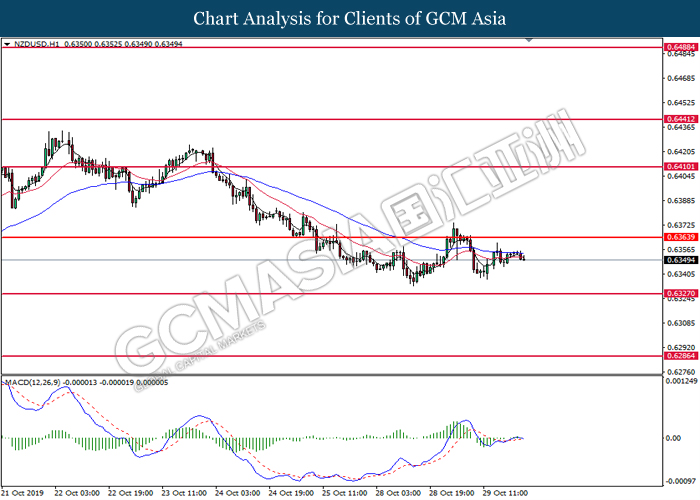 NZDUSD, Daily: NZDUSD was traded within a range while currently testing the support level at 0.6330. MACD which illustrated diminishing bullish momentum suggest the pair to be traded lower after it successfully breakout below the support level.