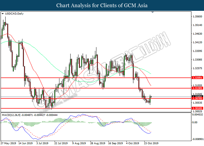 USDCAD, H4: USDCAD was traded higher following prior rebound from the lower levels. MACD which illustrate diminished downward momentum suggests the pair to be traded higher in short-term as technical correction.