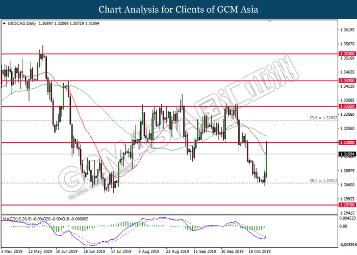 USDCAD, Daily: USDCAD was traded higher following prior rebound from the lower level. MACD which illustrate diminishing bearish momentum suggests the pair to extend its gains, towards the direction of 1.3200.