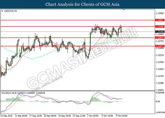 USDCAD, H4: USDCAD was traded higher following prior closure above 1.3340. MACD which illustrate bullish signal suggests the pair to advance further up, towards the direction of 1.3375.