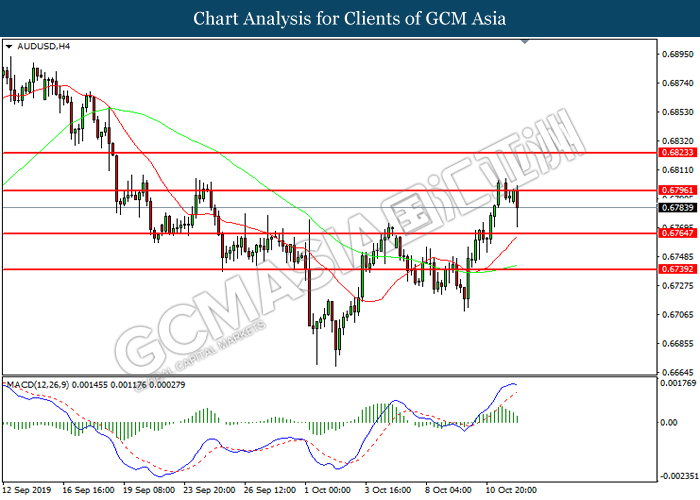 Australian dollar which traded against the dollar have soared following the upbeat reading in employment data. According to Australian Bureau of Statistics, the unemployment rate in Australia have fell to 5.2% in September, better than expected reading of 5.3%. At the same time, Employment in Australia also rose by 14.7K in September which was mainly boosted by the rise of part-time employment. The positive data could help ease the pressure of rate cut by RBA before the end of the year. Based on recent data, the odds of rate cut by RBA have fell to 25% from 45%, thus, pushing the sentiment higher for the pair. At the time of writing, AUD/USD rose 0.46% to 0.6785.
