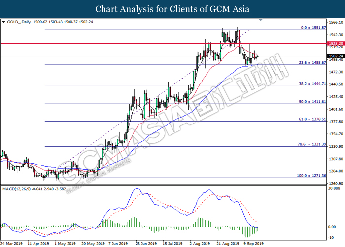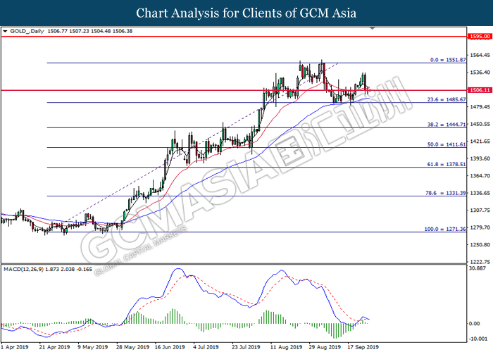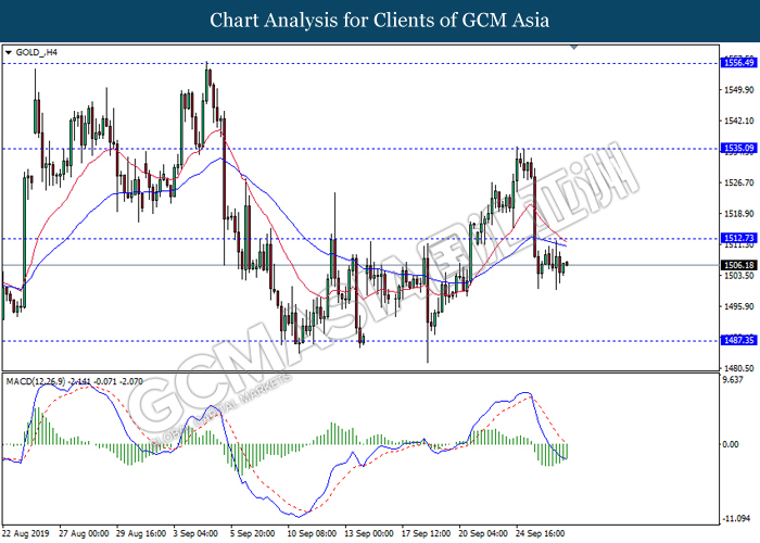 In the commodities market, crude oil price slumped 0.28% to $56.41 per barrel. Oil prices ended lower on yesterday after Saudi Arabia’s daily supply return to its full potential following prior attacks from Houthi group. On the other hand, gold price rose 0.06% to $1,505.47 a troy ounce due to lingering risks in the market.