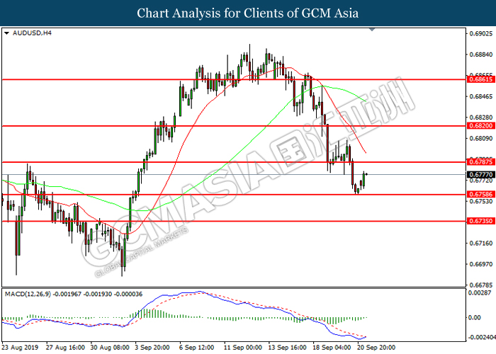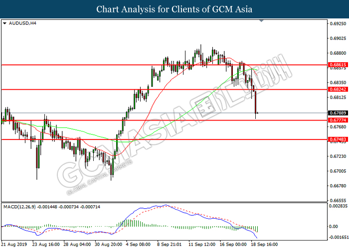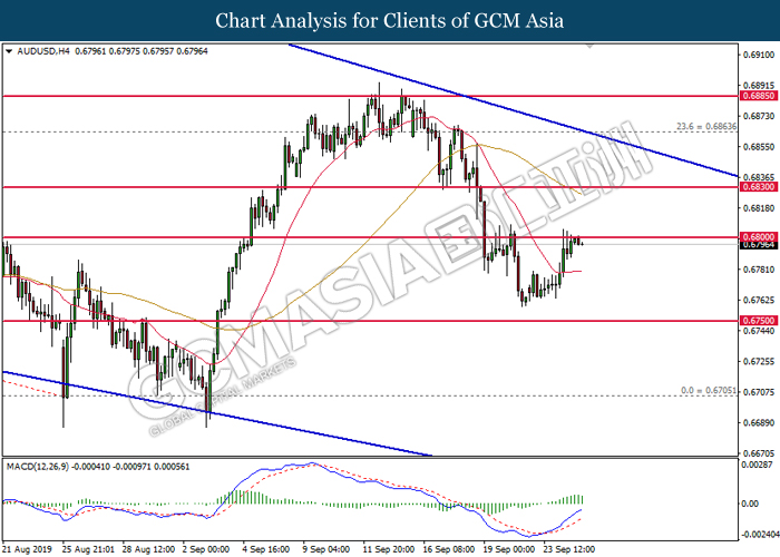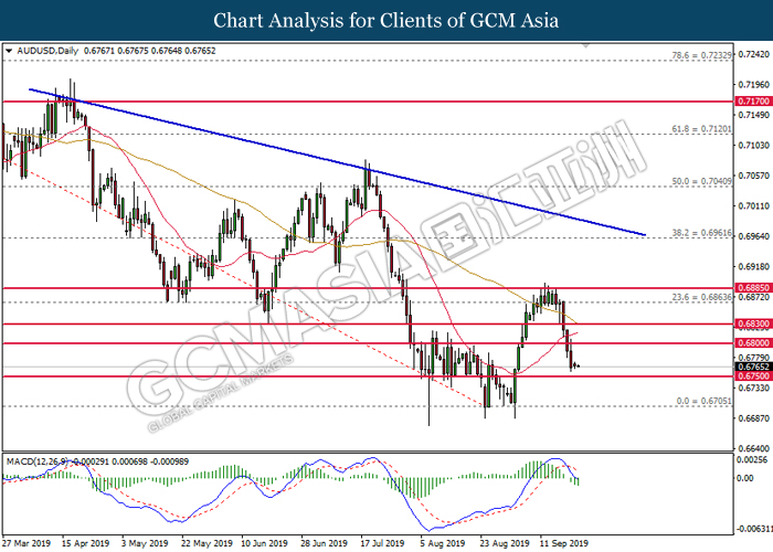 Australian dollar extended its losses although recent economic data from the region fared better-than-expected. According to Australian Bureau of Statistics, the Employment Change for the month of August came in at 34,700 individuals, exceeding economist forecast for a reading up to 10,000 individuals. Similarly, Participation Rate of workforce notched up from 66.1% to 66.2% for the month of August. However, Australian dollar came under pressure as of recent due to internal and external fundamental factors. Most market participants speculate that the Reserve Bank of Australia may cut its interest rate further in order to provide more support towards its fragile economy. With trade war in between US and China remains unresolved, RBA may take precautionary measures in order to circumvent any possible downside risks which stems from their heavy reliance upon China as its main trading partner. Likewise, Aussie received further selloff following hawkish tones portrayed by US Federal Reserve. Although Fed cut its interest rates as expected, they continue to remain bullish upon future economic growth while reiterates to only seek further actions whenever necessary. As of writing, pair of AUD/USD slumped 0.58% to 0.6788.