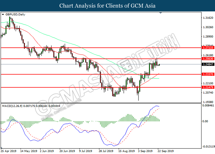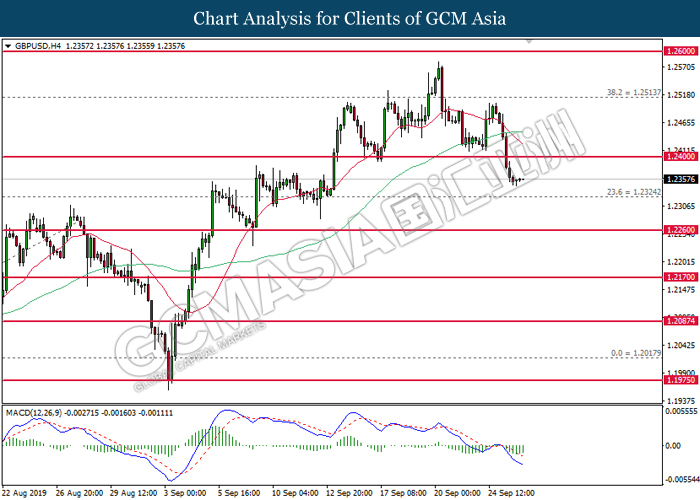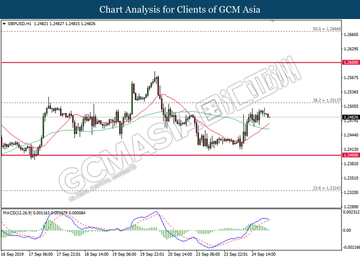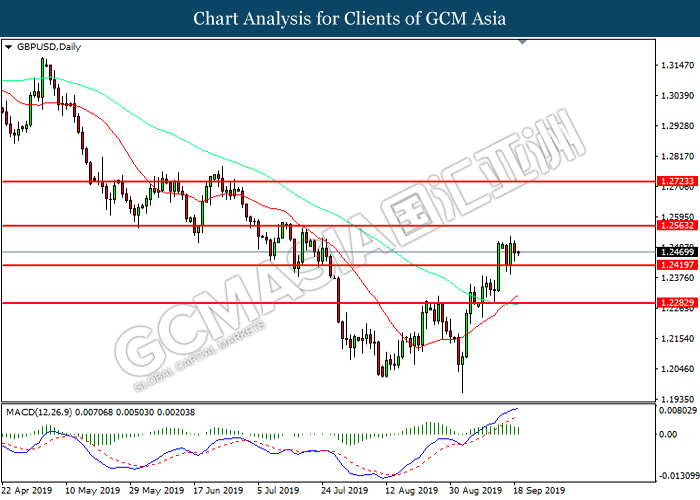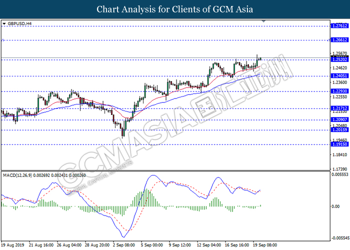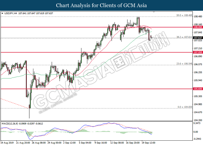 Japanese Yen looks as the worst-performing Group-of-10 currency in September, according to Bloomberg. Bearish pressure continues to surround the Japanese Yen due to large redemption of Japanese Government bonds from the investors. With low local yields in Japan, investors reinvested huge amount of money in asset overseas, spurring the pressure of huge sell-off in Japanese Yen. In addition, Japanese Yen fall amid to positive sign of progress in U.S.- China trade relations talk, which stoked a shift in sentiment toward riskier asset, damping demand for safe-havens. However, the currency remains particularly sensitive to news on trade and geopolitics. In fact, investors would scrutinize future economic data in order to gauge the likelihood of an interest rate cut during their Bank of Japan policy meeting. Investors would also take clues from Brexit developments ahead of the U.K.’s Oct. 31 deadline for leaving the European Union. Furthermore, some analysts still expect Japanese Yen would be fall further amid to large Japanese purchase of U.S. bonds in the second half of the fiscal year begins. On the other hand, Pound Sterling slump after UK Supreme Court ruling against PM Johnson’s suspension amid to the rise of the geopolitical risk. For now, Boris Johnson has an almighty task in trying to get a Brexit deal approved before the 19 October deadline set by lawmakers after failing to suspend Parliament. Meanwhile, investors will continually seek clue from the Brexit latest update. As of writing, USD/JPY slump 0.10% to 107.64 while GBP/USD rose 0.20% to 1.2372.