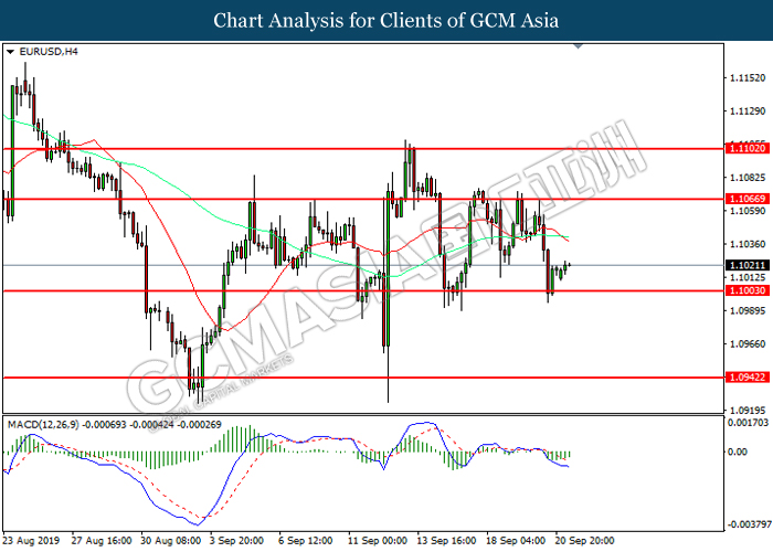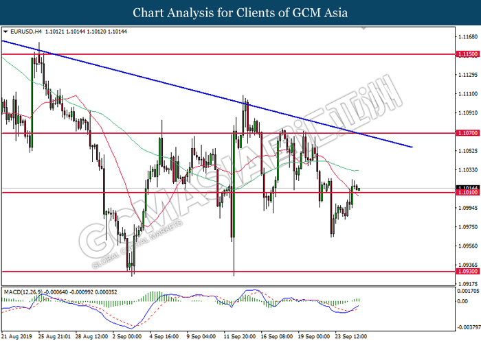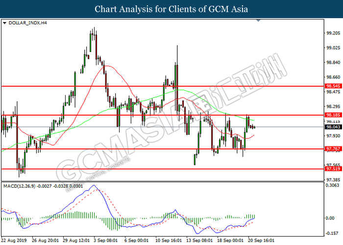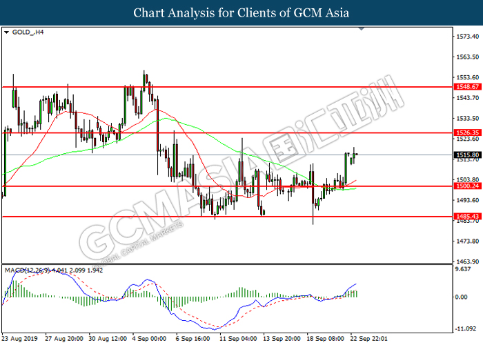 In terms of commodities market, crude oil price depreciates by 0.05% to $58.23 per barrel. Oil prices came under pressure after US President Donald Trump vows to enact more sanctions against Iran following last weekend’s attack upon Saudi Arabia’s oil facility. Such signal increases the tension in the Middle East which sparked higher risk aversion in the market. On the other hand, gold price ticks up 0.01% to $1,494.20 a troy ounce following risk aversion in the market.