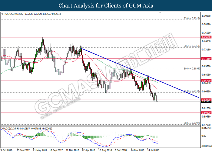 NZD/USD slump after a poor result of New Zealand Westpac Consumer Survey was released. The Westpac Consumer survey measures the change in the level of consumer confidence in economic activity. According to Westpac Banking Corporation, the Westpac Consumer Survey for the third quarter has dropped below the forecast 104.0 and 103.5 prior to 103.1. In fact, Westpac claimed that households are still reluctant to spend despite the fall in interest rates in recent months, due to high global market and political risks. Moreover, New Zealand’s seasonally adjusted current account deficit narrowed by $140 million to $2.4 billion in the June 2019 quarter. However, the reading was still poorer than the market expectation, according to Statistic New Zealand. These poor results cause the NZD/USD to suffer from further depreciation. On the other hand, Loonie depreciated as the Canadian manufacturing sales fell unexpectedly to -1.3% in July compared to a revised fall of -1.4% in the prior month. According to Statistic Canada, the manufacturing Sales fell -1.3% more than the market expectation of -0.3%, due to auto and metal plant shutdowns. Meanwhile, oil prices fall after Saudi Arabia claimed the oil production could be restored to normal levels faster than thought, which further weighed on the loonie, says Reuters. As of writing, NZD/USD depreciated by 0.19% to 0.6342 while USD/CAD surged 0.07% to 1.3245.
