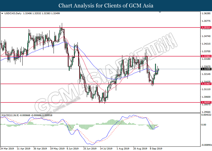 USDCAD, Daily: USDCAD was traded higher following prior rebound from the support level at 1.3145. MACD which illustrate diminished downward momentum suggests the pair to extend its gains toward the resistance level at 1.3335.
