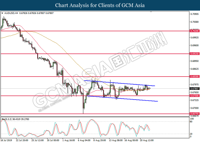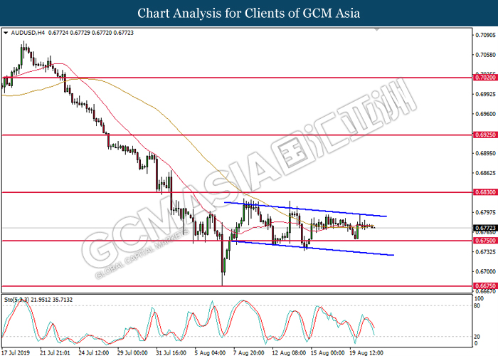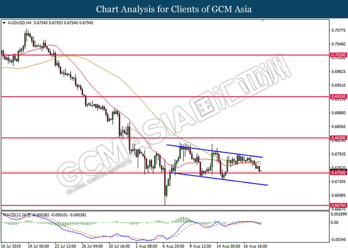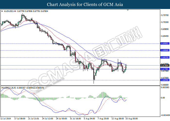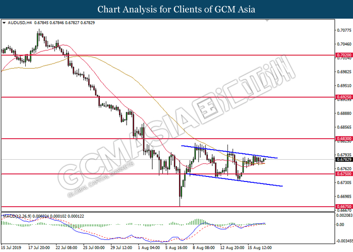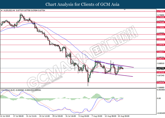 Japanese yen held onto its gains during Asian trading session following fears of possible recession in the near future. Market sentiment remains fragile following disappointing economic data from China and Germany which reveals the extent of damage from US-China trade war. Although Washington has recently announced to delay the introduction of tariffs on certain category of items until mid-December, investors remains skeptical over US ability to reach a substantial trade agreement with the China in the future. Likewise, US 2-year treasury yields rose above 10-year US treasury yield for the first time since 2007, signaling a strong recession warning ahead. The inversion of yield curve shows that investors are expecting a diminishing economic growth ahead as long-term bond yields depreciates below short-term bond yields. As of writing, pair of USD/JPY ticks down 0.03% to 105.95. On the other hand, pair of AUD/USD rose 0.44% to 0.6776. Australian dollar received some bullish buyback after its Employment Change data for the month of July came in at 41.4K, exceeding economists’ forecast of only 14.0K. The data shows that hiring momentum in the Australia remains resilient although regional inflation remains tepid.