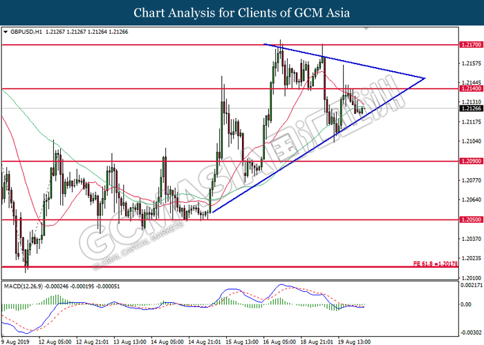 New Zealand dollar received some bearish pressure following the release of economic data from the region this morning. For the month of July, Business NZ Purchasing Manager Index slumped into contraction region with a reading of 48.2, missing economists’ forecast for a rise to 51.8. The data sent worrisome signals across the market as it came in line with global economic outlook which is skewed towards bearish. The release of the report came in after Reserve Bank of New Zealand’s Governor Adrian Orr emphasized that they would respond to low inflationary pressure by lowering their interest rates further. Due to increasing expectation that the central bank would ease their monetary policy further, investors have shifted their portfolio into safe-haven assets such as Japanese Yen. As of writing, pair of NZD/USD slumped 0.24% to 0.6431. On the other hand, pair of GBP/USD was traded flat around 1.2086. The demand for pound sterling remains tepid given the risk that UK Prime Minister Boris Johnson may deliver a hard Brexit on 31st October 2019 without any transitional trade agreement with European Union, potentially sparking economic turmoil in the short-term.