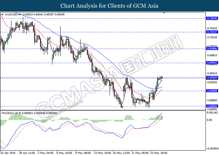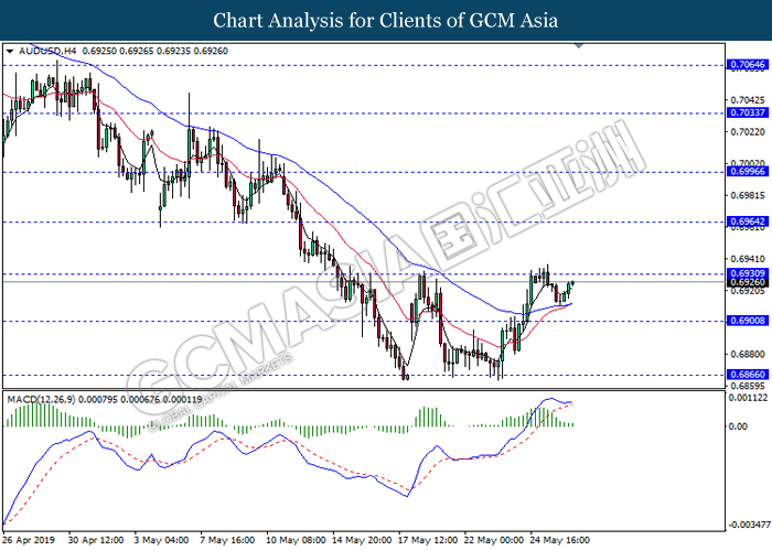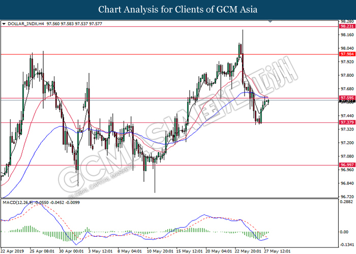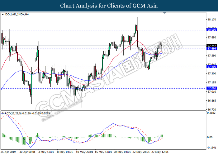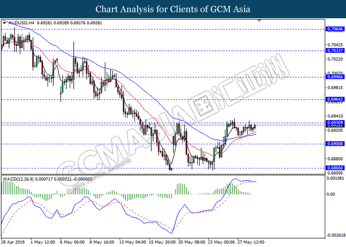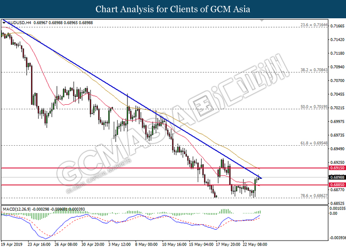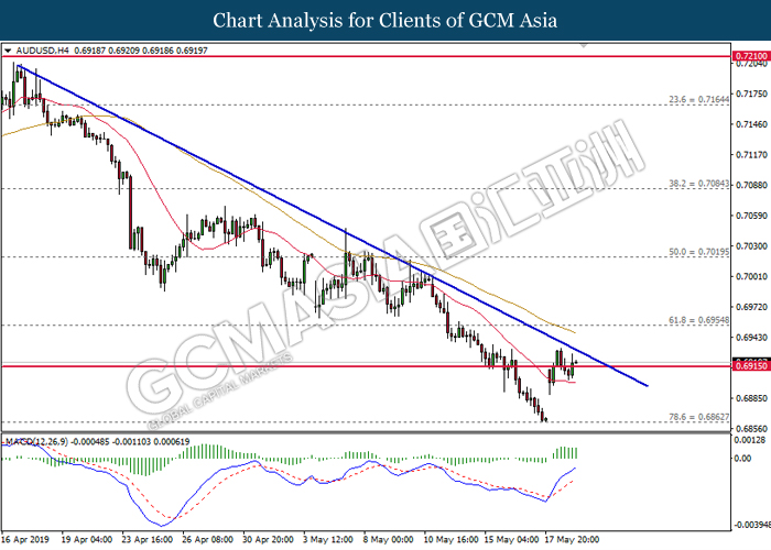 Dollar index remains steady against its basket of six major currency pairs after U.S lifted the ban on China’s tech company Huawei for temporary. Recently, U.S President Donald Trump have signed an executive order that restrict U.S companies from having any business ties with China tech giant Huawei. The move have further escalated the tension between both economic powerhouse U.S and China. However, the Department of Commerce have now lifted the ban temporarily and provide Huawei a temporary license to maintain its current products. As relations between China and U.S have further worsen, market remains optimistic on U.S economy where recent data indicates the economic health in U.S remain robust. Dollar index rose 0.06% to 97.80 as of writing. On the other hand, AUD/USD plummets 0.35% to 0.6878 at the time of writing following dovish signal from Reserve Bank of Australia (RBA). According to meeting minutes by RBA, members in the RBA have discussed the possibility of rate cut due to an uptick in unemployment rate. Besides that, RBA’s Governor Philip Lowe also said on Tuesday that the central bank will consider the case for lower interest rates during its June policy meeting. The dovish sentiment has cemented further expectation of first rate cut to a record low of 1.50%, thus causing investors to flee from the Aussie.