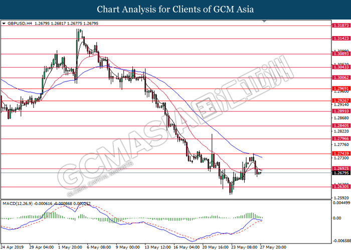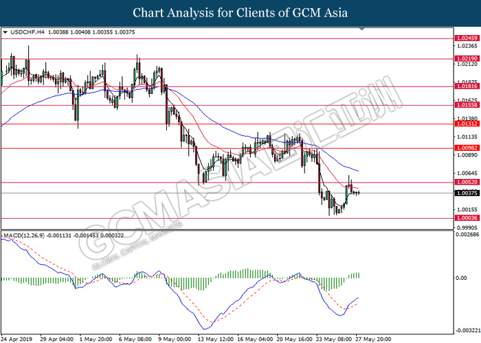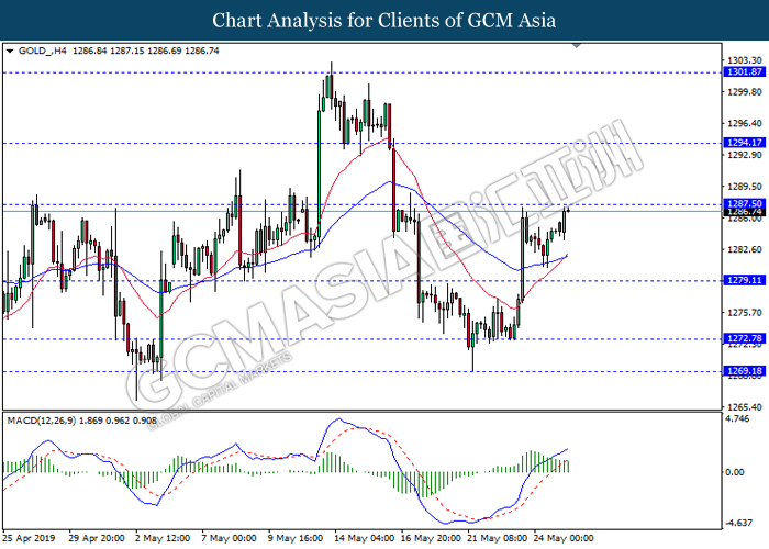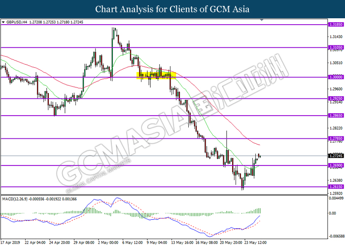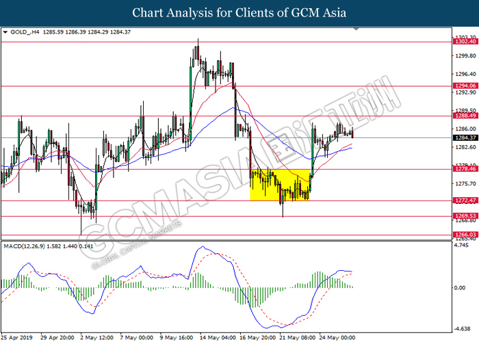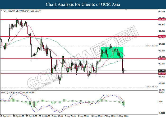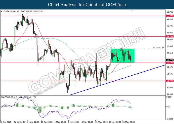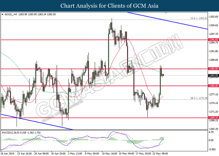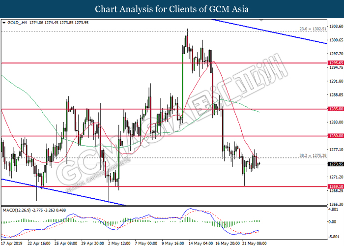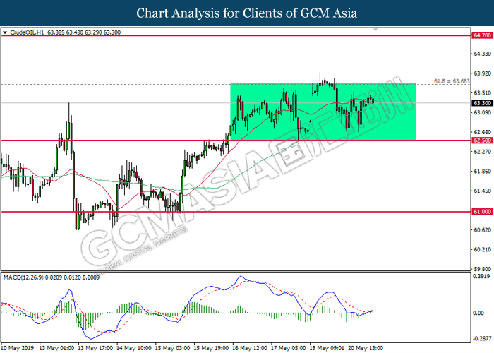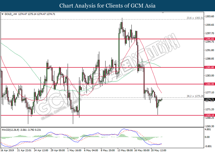 As for commodities, crude oil price rose 0.06% to $63.42 per barrel as of writing as escalating tension between U.S and Iran continue to drive the commodity. According to recent reports, U.S. President Donald Trump on Monday threatened Iran with “great force” if it attacked U.S. interests in the Middle East. The rising tension in the Middle East have continue to support the demand for the oil where market continue to expect a tighter market. On the other hand, gold price fell 0.15% to $1275.73 a troy ounce at the time of writing as the safe-haven asset remain pressured by strong dollar.