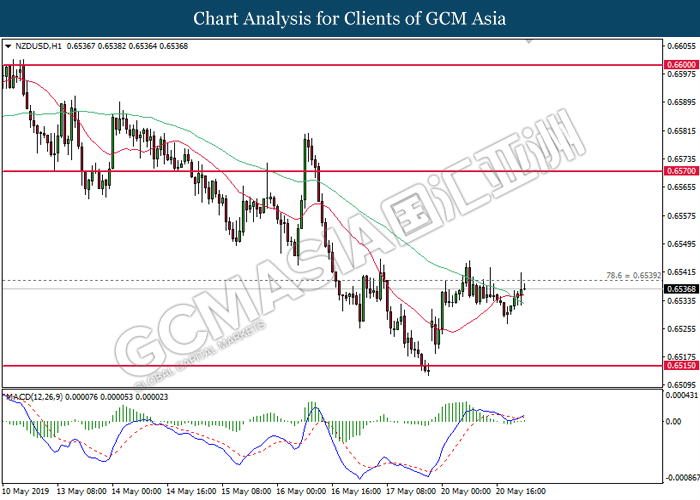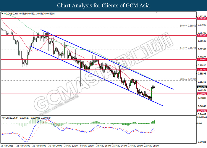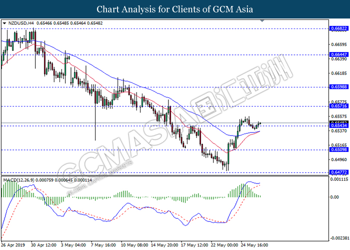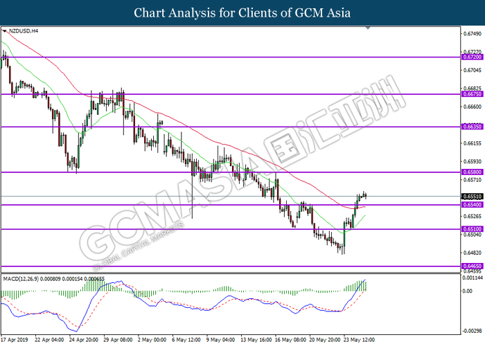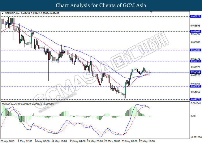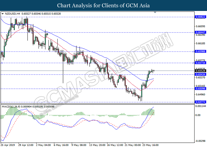 Dollar index which gauge its value against a basket of six major currencies continues to glow while edging higher by 0.03% to 97.80 following upbeat consumer confidence yesterday. According to Conference Board, US Consumer Confidence Index for May has further risen following an increase in April. The index now stands at 134.1, exceeding the economist forecast of 130.1 while showing that consumers are in greater optimism about the short term economic outlook and job opportunities in May. On the other hand, the pair of NZD/USD rose 0.15% to 0.6550 as RBNZ Governor Adrian Orr commented that they are “open-minded” about the commercial bank capital requirement ratio where it will be adjusted if they notice sufficient reason to change the parameter. Besides, Adrian Orr reiterated that upward adjustment will be executed if they detected the sign of major shock is close at hand.