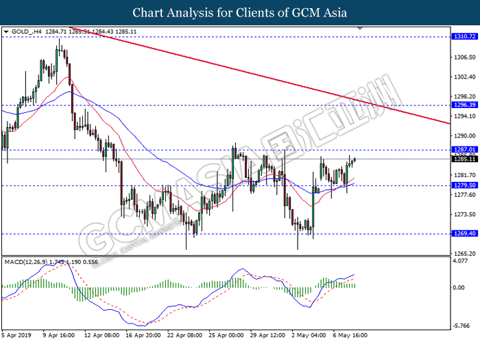 As for commodities, crude oil price rebounded by 0.29% to $61.57 per barrel after plunging more than 2% yesterday amid concerns on trade war tensions. The oil market continues to be pressured after President Trump threatened to increase the 10% tariff on $200 billion Chinese goods to 25% by Friday if no deal is reached by this week. On the other hand, gold price edged higher by 0.11% to $1285.80 a troy ounce amid increased demand for safe-haven assets.