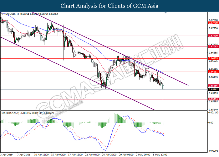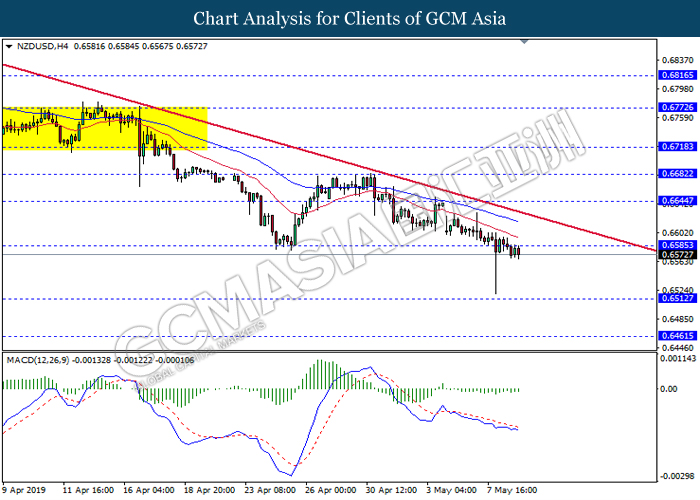 New Zealand dollar received tremendous selling pressure following the release of interest rate decision from Reserve Bank of New Zealand (RBNZ). As of writing, pair of NZD/USD was quoted down 0.43% to 0.6573 during mid-Asian trading session. As widely expected, RBNZ announced to cut its interest rate by 25 basis points from 1.75% to 1.50% due to bleak economic progression in New Zealand. RBNZ quoted that there are still large uncertainties which surrounds the economy and one of the major factors lies upon US-China trade war. Likewise, the central bank was surprised by a weaker downturn in business sentiment and consumer spending, thus initiating an interest cut to balance out the economy. On the other hand, pair of AUD/USD rose 0.09% to 0.7017. Australian dollar was unfazed by weaker-than-expected trade data from China as market participants pay their attention upon US-China trade talk.
